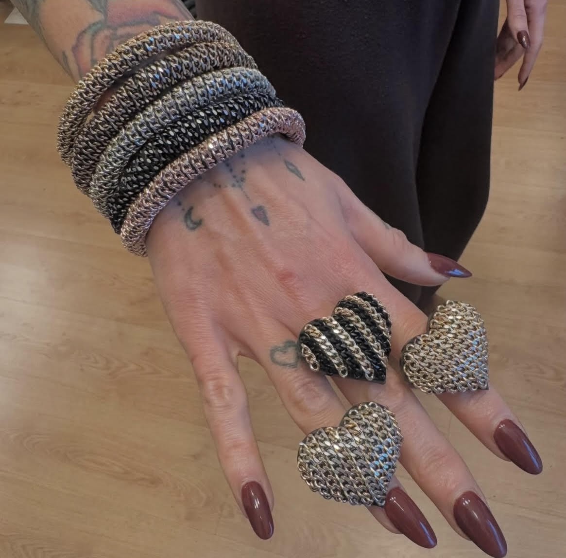 Crafted by skilled artisans in Italy, the BE Heart Chain Ring features multiple delicate chains that create a layered, sophisticated look. Its adjustable design ensures a perfect fit, combining elegance with comfort. This ring is a refined accessory that enhances any outfit with subtle Italian craftsmanship and contemporary style.