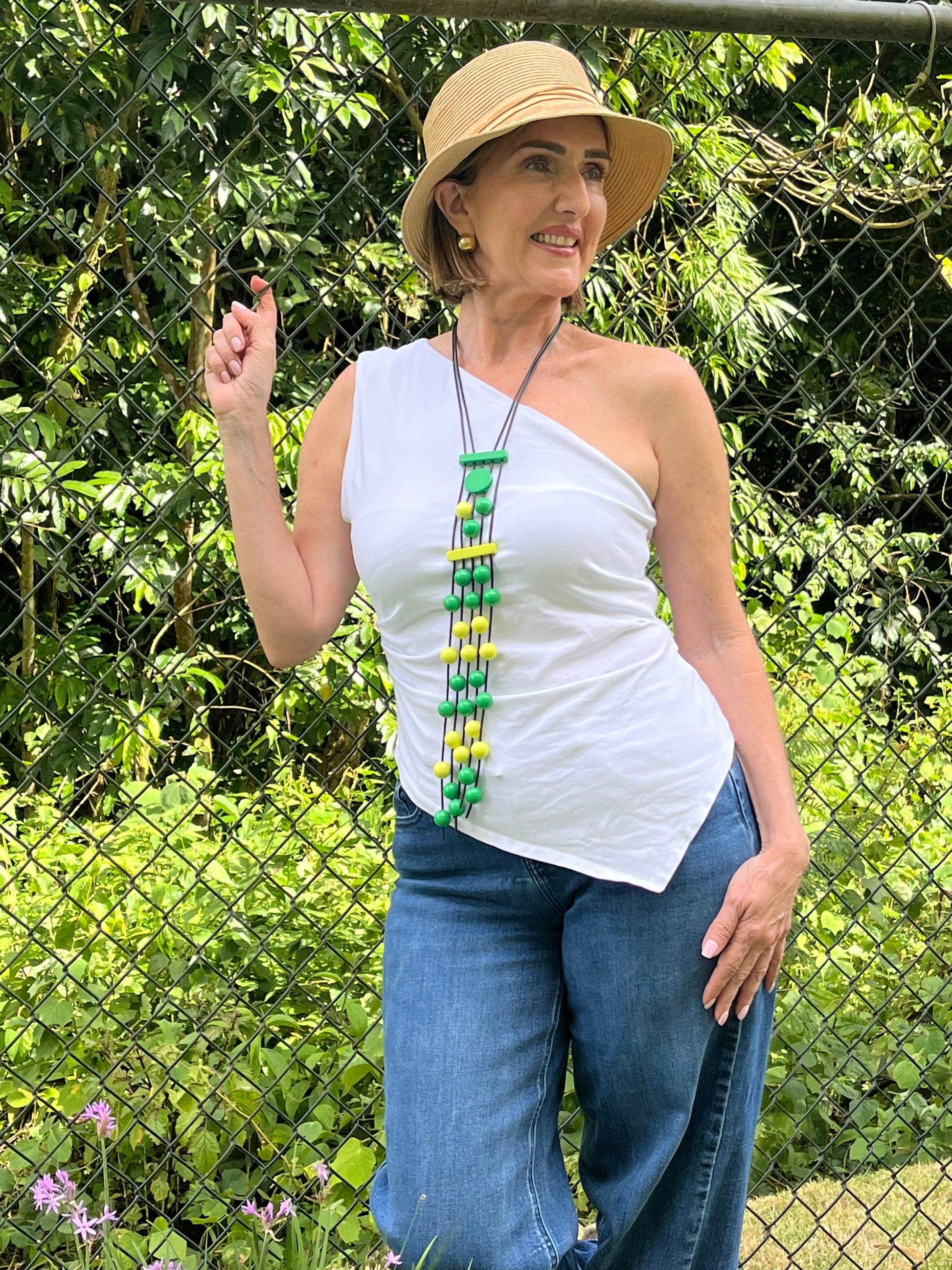 Elevate your everyday look with the EM Singapore Green and Black Necklace, an artisanal treasure handmade in Italy. Crafted from premium resin, PVC, and tubes, this necklace brings a unique, refined touch to casual outfits. Experience effortless elegance that transforms simple style into statement fashion with this beautifully crafted accessory.
