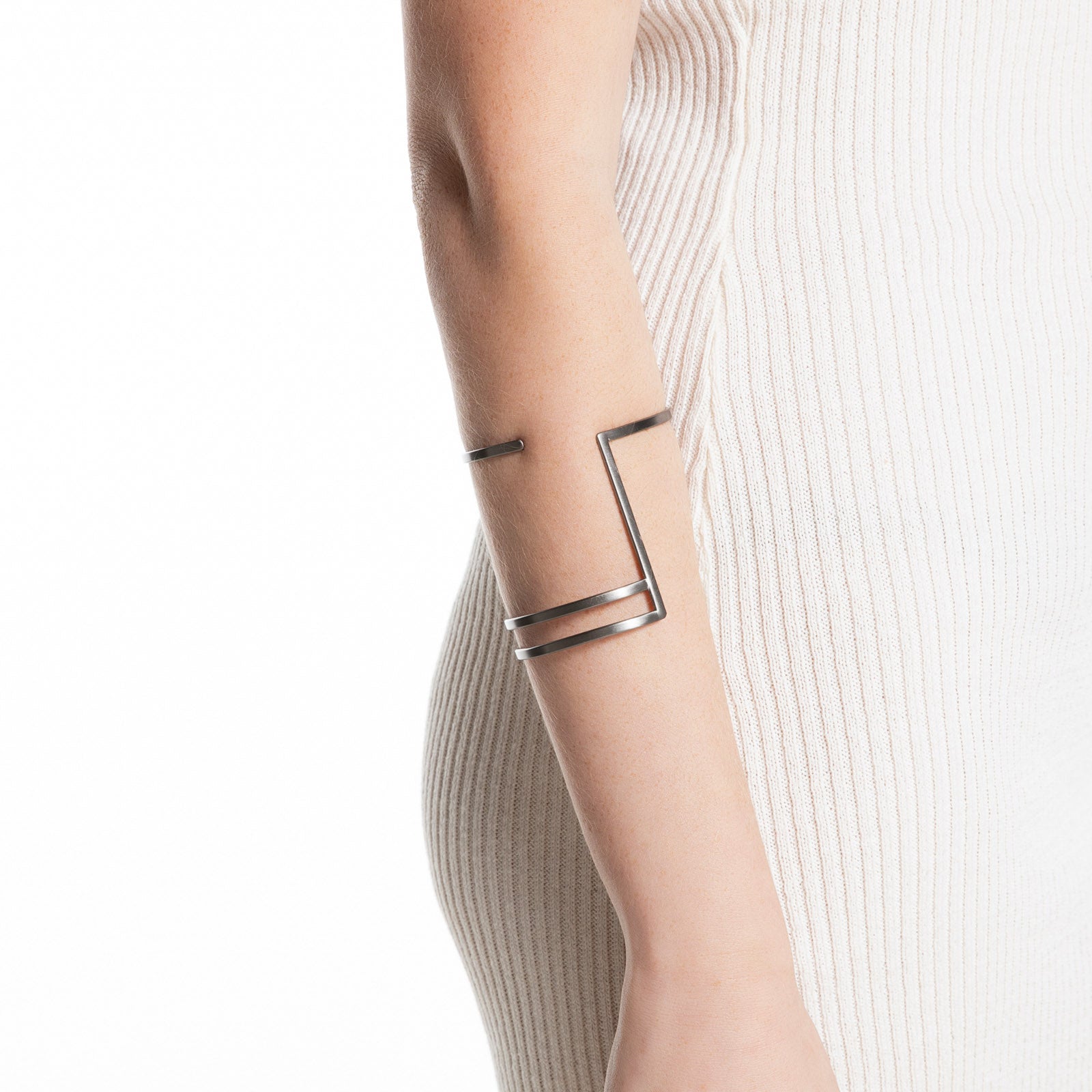 The KV Benefit Bracelet features a striking design where a sleek, straight line elegantly supports surrounding circular forms, symbolizing a path that connects and guides toward personal aspirations. Crafted from durable gun metal plated brass, this bracelet combines meaningful symbolism with refined style, making it a sophisticated accessory for those who appreciate both design and purpose.